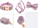 Luxe Velvet Dog Collar & Leash Set - Dark Grey with Gold Buckles